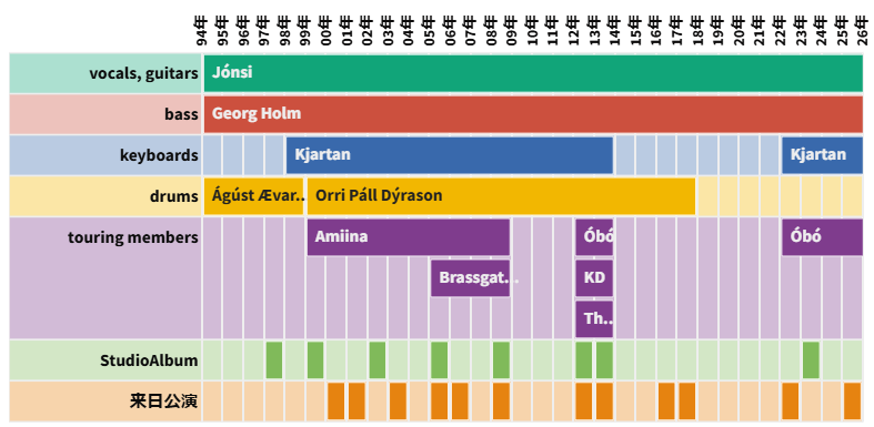バンドの来歴についてアイスランドのポストロックバンドシガーロスについて、評価や来日公演のセットリストをグラフ等で可視化し人気曲やおすすめのアルバムを紹介。画面の小さいスマホの場合、横向き又はピンチイン/ピンチアウトすると見やすいかと思います...