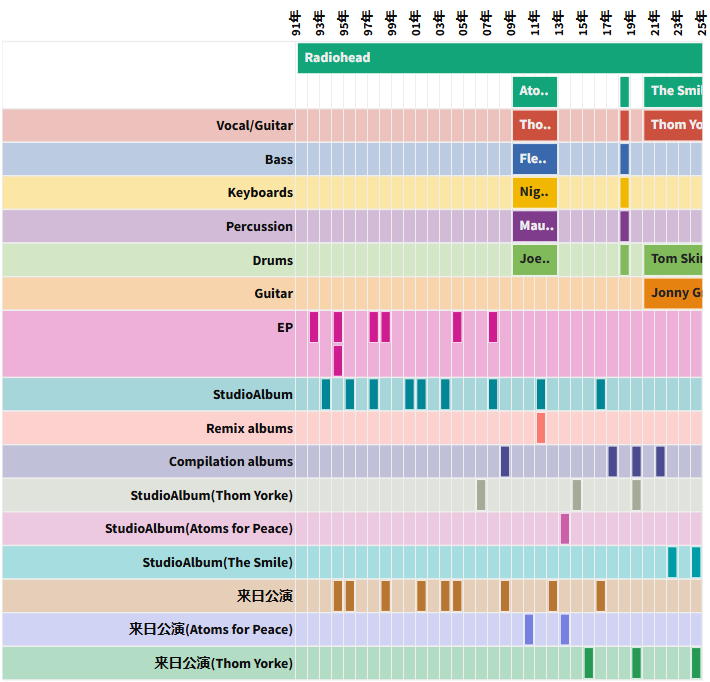 Raiodheadのボーカルトムヨークについて、評価や来日公演のセットリストをグラフ等で可視化し人気曲やおすすめのアルバムを紹介。