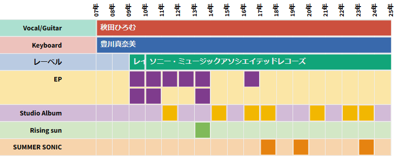 バンドの来歴についてロックバンド・アマザラシについて、バンドの略歴・ライブツアーのセットリストをグラフ等で可視化し人気曲・アルバムを紹介。画面の小さいスマホの場合、横向き又はピンチイン/ピンチアウトすると見やすいかと思います。タイムライン年...
