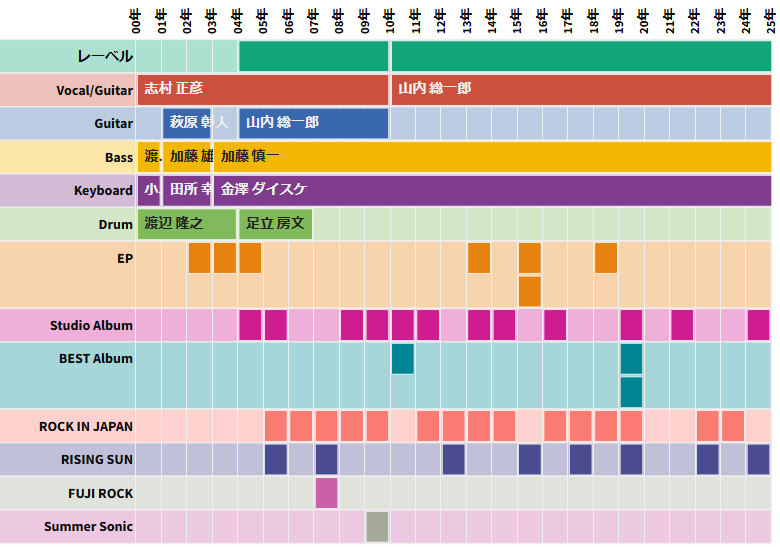 バンドの来歴についてフジファブリックについて、バンドの略歴・ライブツアーのセットリストをグラフ等で可視化し人気曲やおすすめのアルバムを紹介。画面の小さいスマホの場合、横向き又はピンチイン/ピンチアウトすると見やすいかと思います。タイムライン...