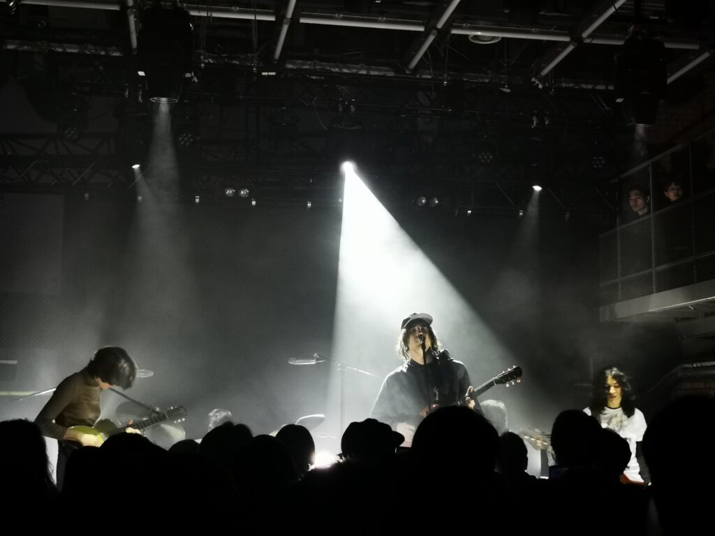 日本語で百馬のタイトルコールから始まった「100 Horses」や「Bow Down」なんかは勢いを重視した音源よりもかなり早いテンポでの演奏。「Domoto」に関しては構成から全く異なるアレンジ。「Islands of Men」や「Long Island City Here I Come」はギターノイズが爆発するオルタナギターロックな展開でリードギターのエミリー・グリーンが出すグリッチでノイジーなサウンドが寄りサイケな雰囲気を曲に与えていました。緩急がついた演奏がライブで映える「Trinidad」は本日のハイライト。このバンド曲が良いだけでなくバンドアンサンブルがしっかりしていて若手ながら既に仕上がっていて凄い。