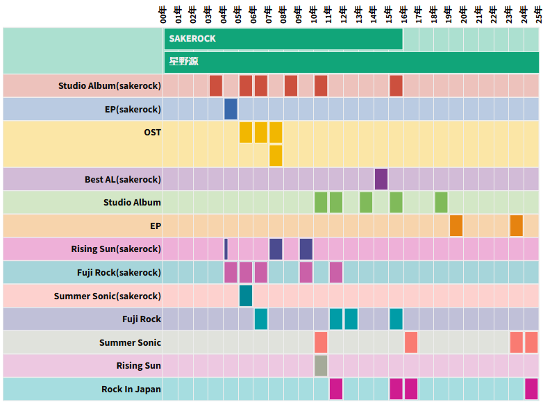 来歴について星野源について、略歴・ライブツアーのセットリストをグラフ等で可視化し人気曲やおすすめのアルバムを紹介。画面の小さいスマホの場合、横向き又はピンチイン/ピンチアウトすると見やすいかと思います。タイムライン年単位でタイムラインを作成...