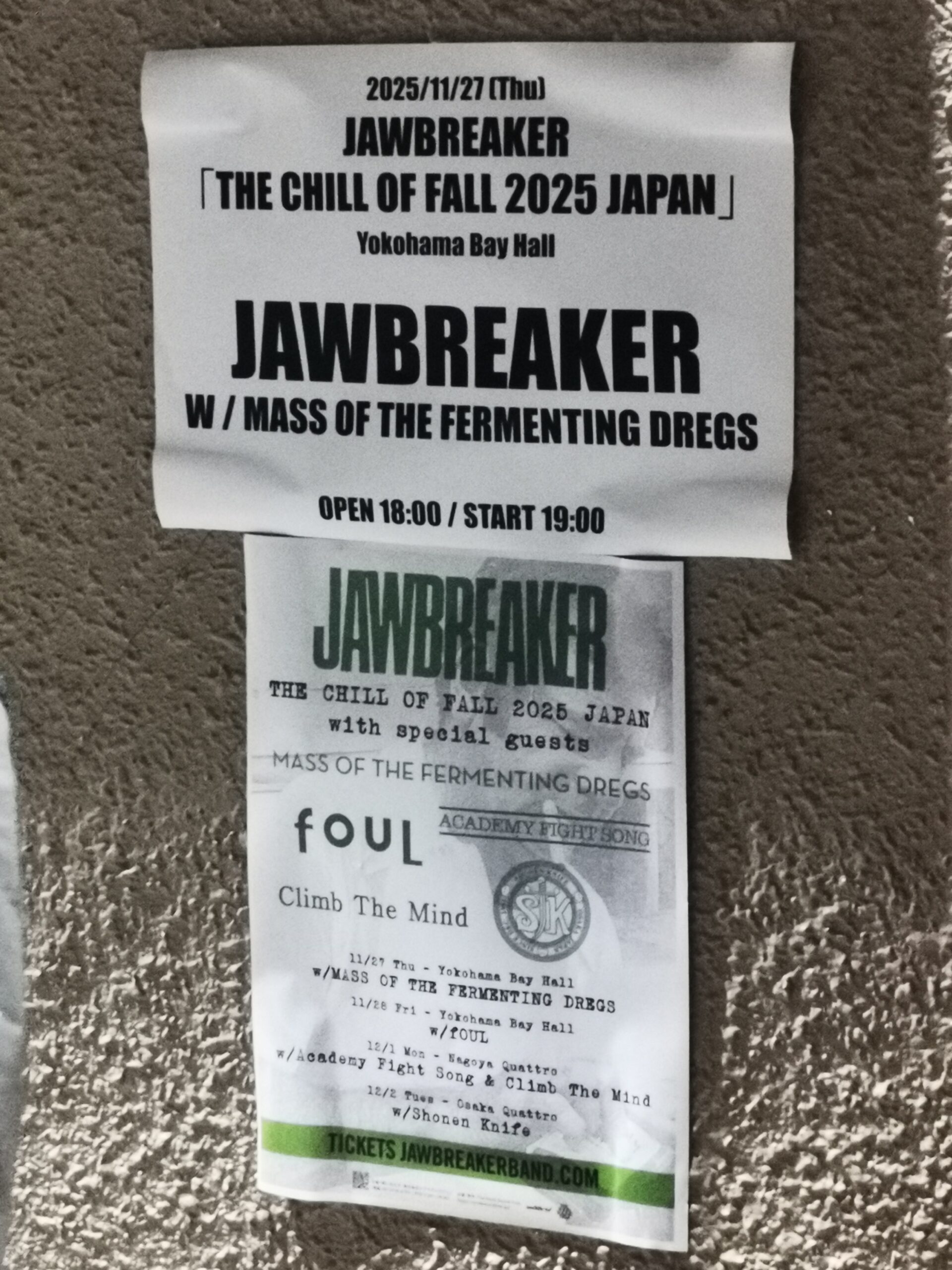 ギターの人がファンということでJawbrekerのTシャツ着用、最初の一打でスネアのスナッピーが切れたのか即やり直すもその後は安定したライブ、前回見た時とセットリストがほぼ同じだったが音響が良くフロアの反応も上々でした。1960って曲が良い。