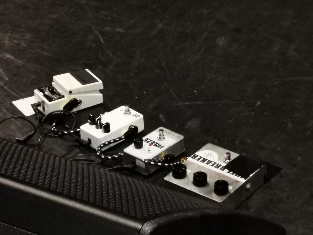 全体的に音が大きくギター2本がハイゲイン、ベースは硬質でアクティブっぽい主張の強いサウンド。ドラムは派手さはない基本に忠実なプレイで何度もガムを膨らましつつ叩いていたのが印象的。Condition OaklandやJet Black用のサンプラーがセットされているだけで同期なしのシンプルなバンドサウンドでした。