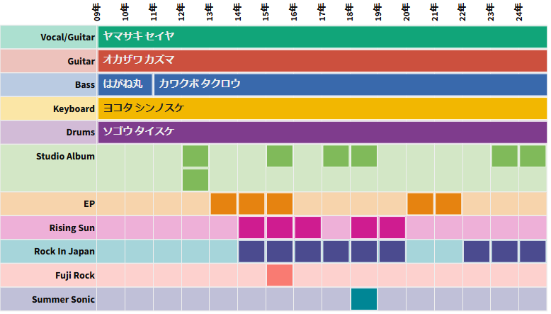 バンドの来歴についてロックバンド・キュウソネコカミについて、バンドの略歴・ライブツアーのセットリストをグラフ等で可視化し人気曲・アルバムを紹介。画面の小さいスマホの場合、横向き又はピンチイン/ピンチアウトすると見やすいかと思います。タイムラ...