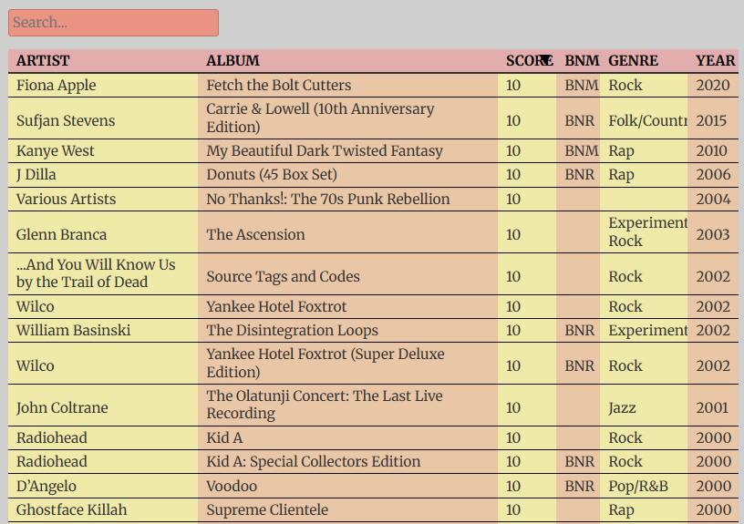 主なレビューは1999年から、BNM(ベストニューミュージック)は2002年からつけ始めたようです。2026年からは有料化し無料で見る場合には制約があります。
