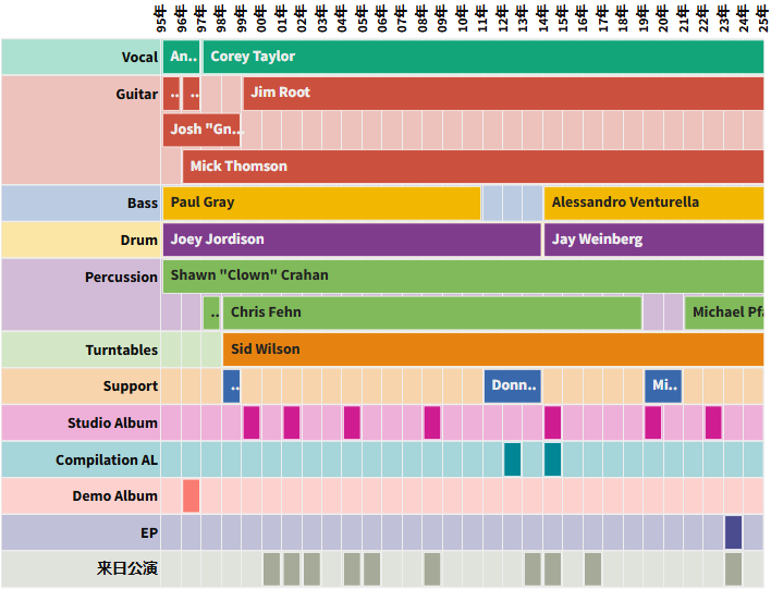 バンドの来歴についてアメリカのメタルバンドスリップノットについて、評価や来日公演のセットリストをグラフ等で可視化し人気曲やおすすめのアルバムを紹介。画面の小さいスマホの場合、横向き又はピンチイン/ピンチアウトすると見やすいかと思います。タイ...