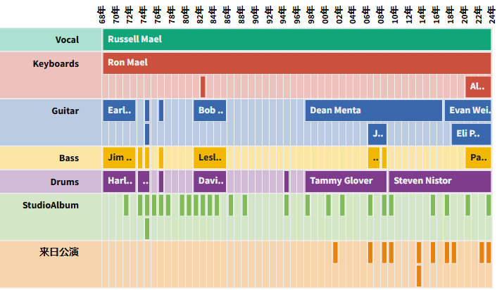 バンドの来歴についてアメリカのポップ・ロックバンド・スパークスについて、評価や来日公演のセットリストをグラフ等で可視化し人気曲やおすすめのアルバムを紹介。画面の小さいスマホの場合、横向き又はピンチイン/ピンチアウトすると見やすいかと思います...