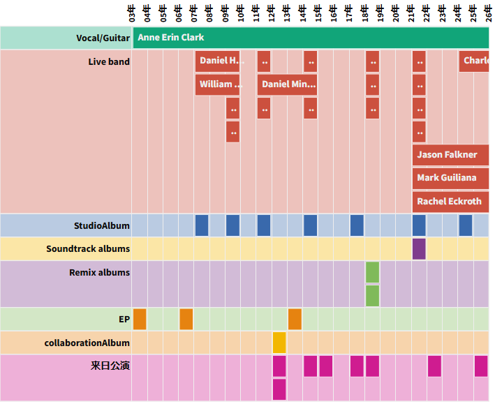 来歴についてアメリカのシンガーソングライター、セイント・ヴィンセントについて、評価や来日公演のセットリストをグラフ等で可視化し人気曲やおすすめのアルバムを紹介。画面の小さいスマホの場合、横向き又はピンチイン/ピンチアウトすると見やすいかと思...