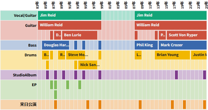 来歴についてスコットランドのシューゲイザーバンド、ジーザスアンドメリーチェインについて、評価や来日公演のセットリストをグラフ等で可視化し人気曲やおすすめのアルバムを紹介。画面の小さいスマホの場合、横向き又はピンチイン/ピンチアウトすると見や...